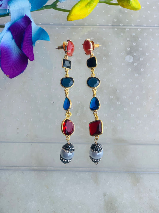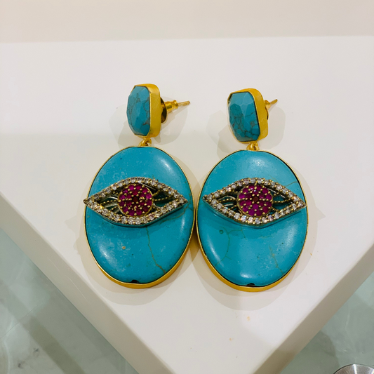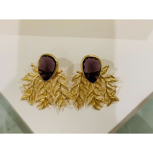 Handcrafted Stone Earrings in brass metal with 18k gold plating.