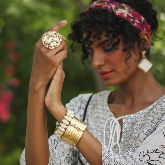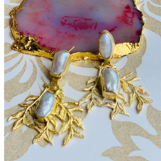 Handcrafted Stone Earrings in brass metal with 18k gold plating.