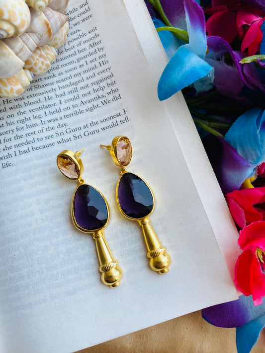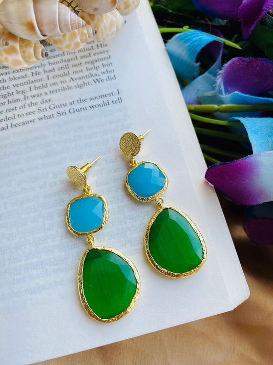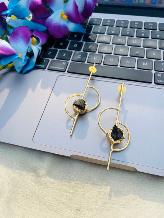 Handcrafted Stone Earrings in brass metal with 18k gold plating.