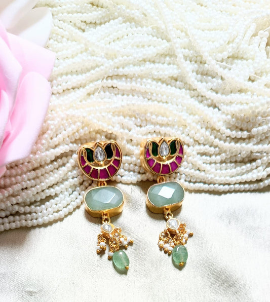 Noor Meenakari Mint Stone Earring