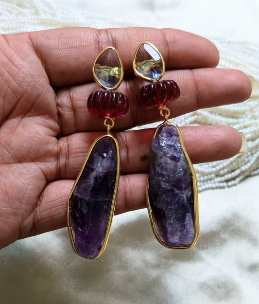 Raw Amethyst & Garnet Statement Earring