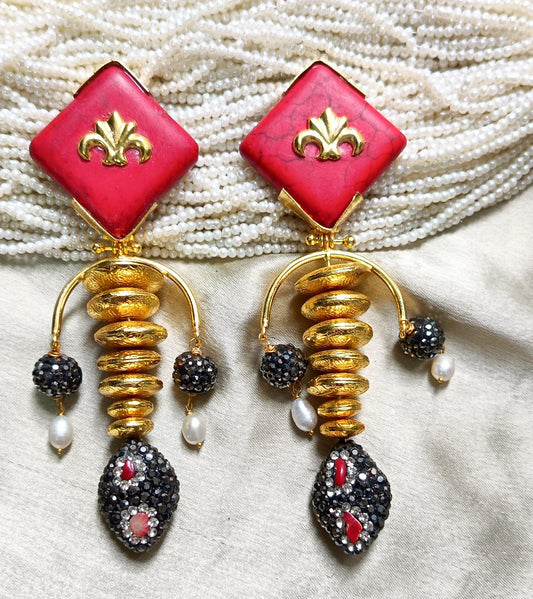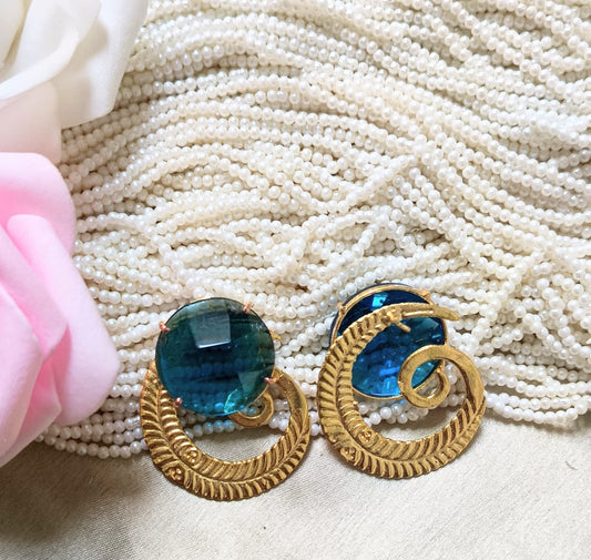 Handcrafted Stone Earrings in brass metal with 18k gold plating.