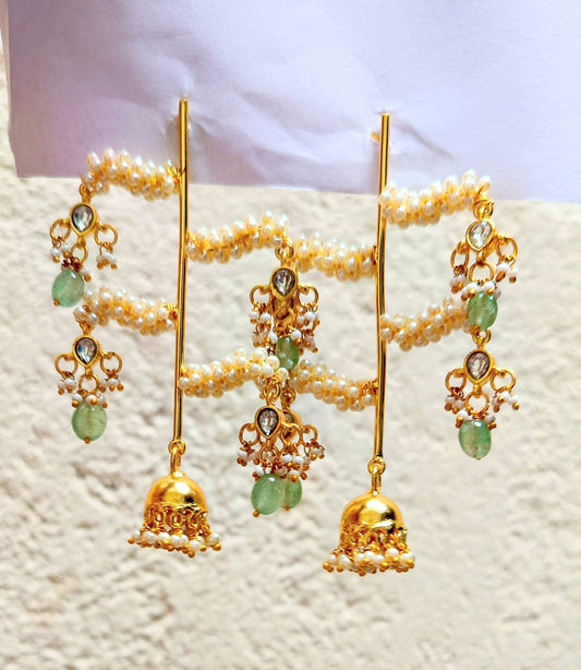 Pearl Kundan Jhumka Chandbali Earring