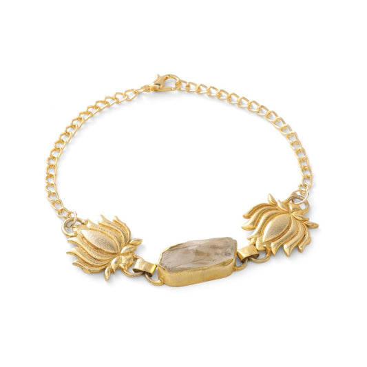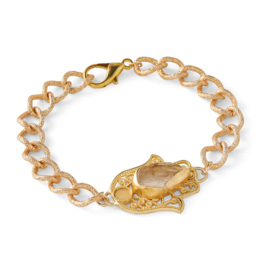 Rose quartz stonel in chain in Brass Metal with 18K Gold Plating