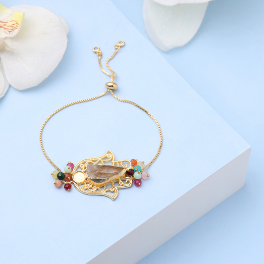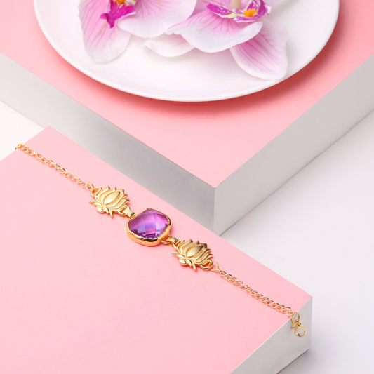 Rose quartz stonel in chain in Brass Metal with 18K Gold Plating