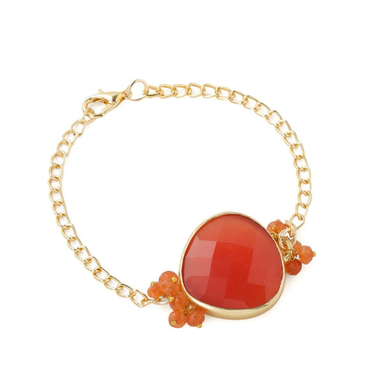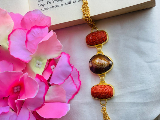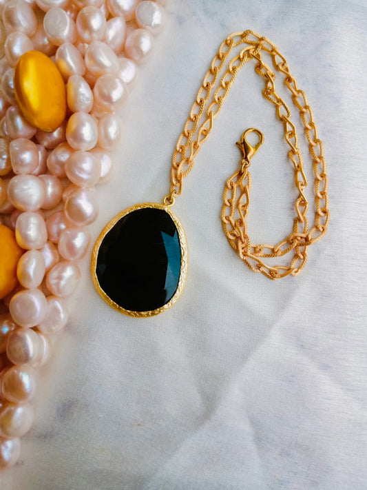 Agate stone with pearl in chain in Brass Metal with 18K Gold Plating