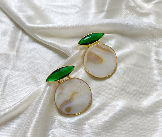 MOP Round Drop with Coloured gemstone Studs