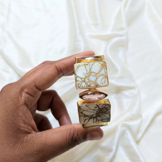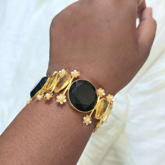 Gold Handcuff Cuff Bracelet with Pearl Accent