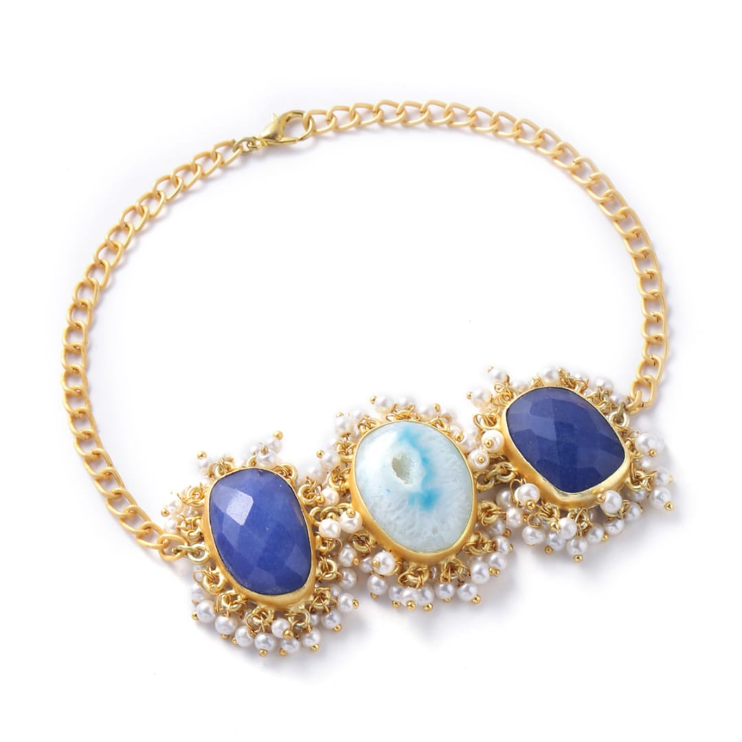 Agate Bracelet with Pearls Stones studded in Brass Metal with 18K Gold Plating