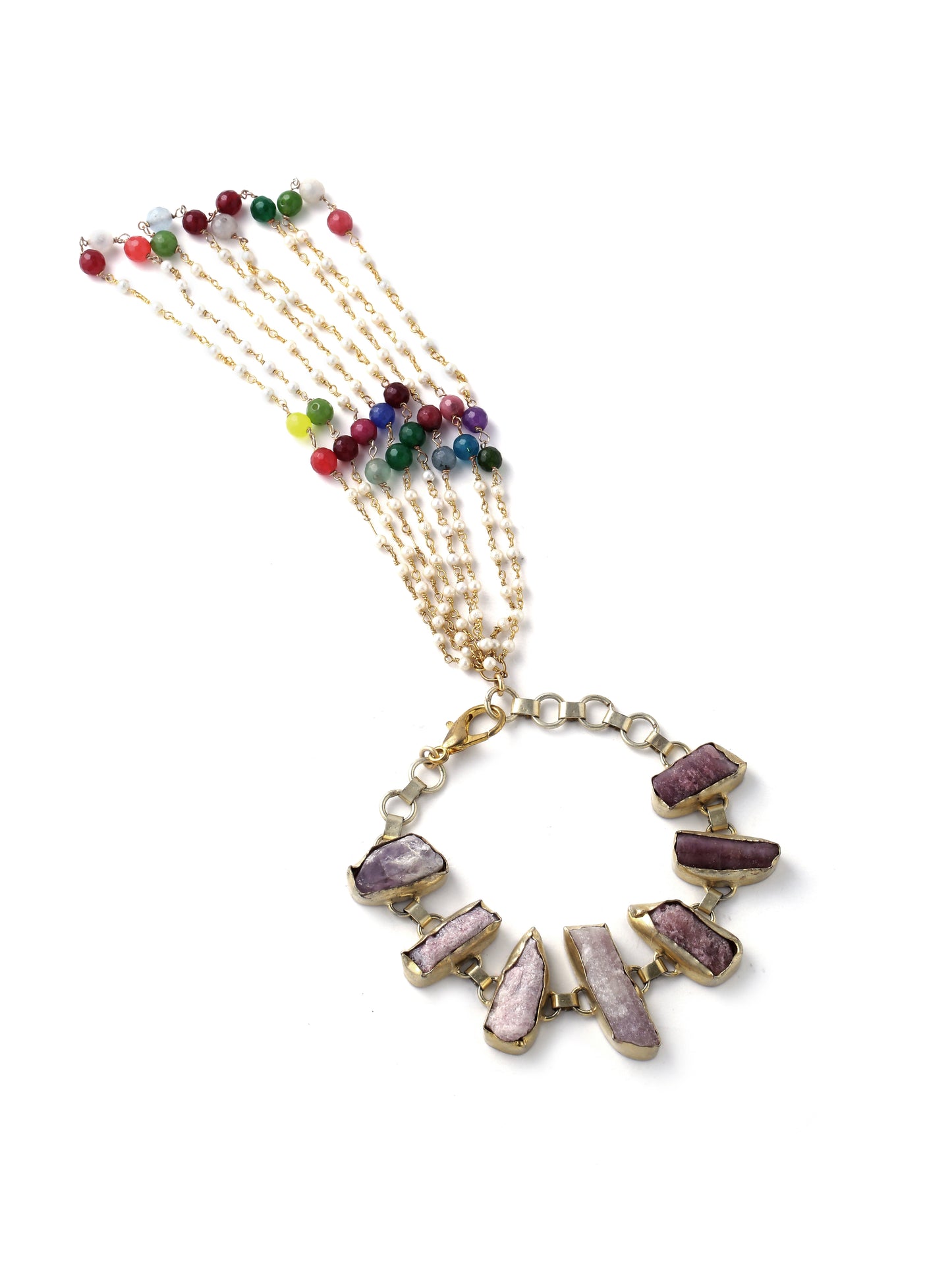 Tourmaline rough Stone with Tassel Stones studded in Brass Metal with 18K Gold Plating