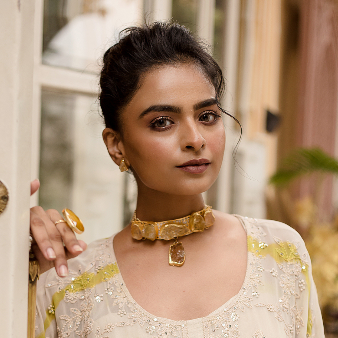 Citrine Rough Stones studded in Brass Metal with 18K Gold Plating.