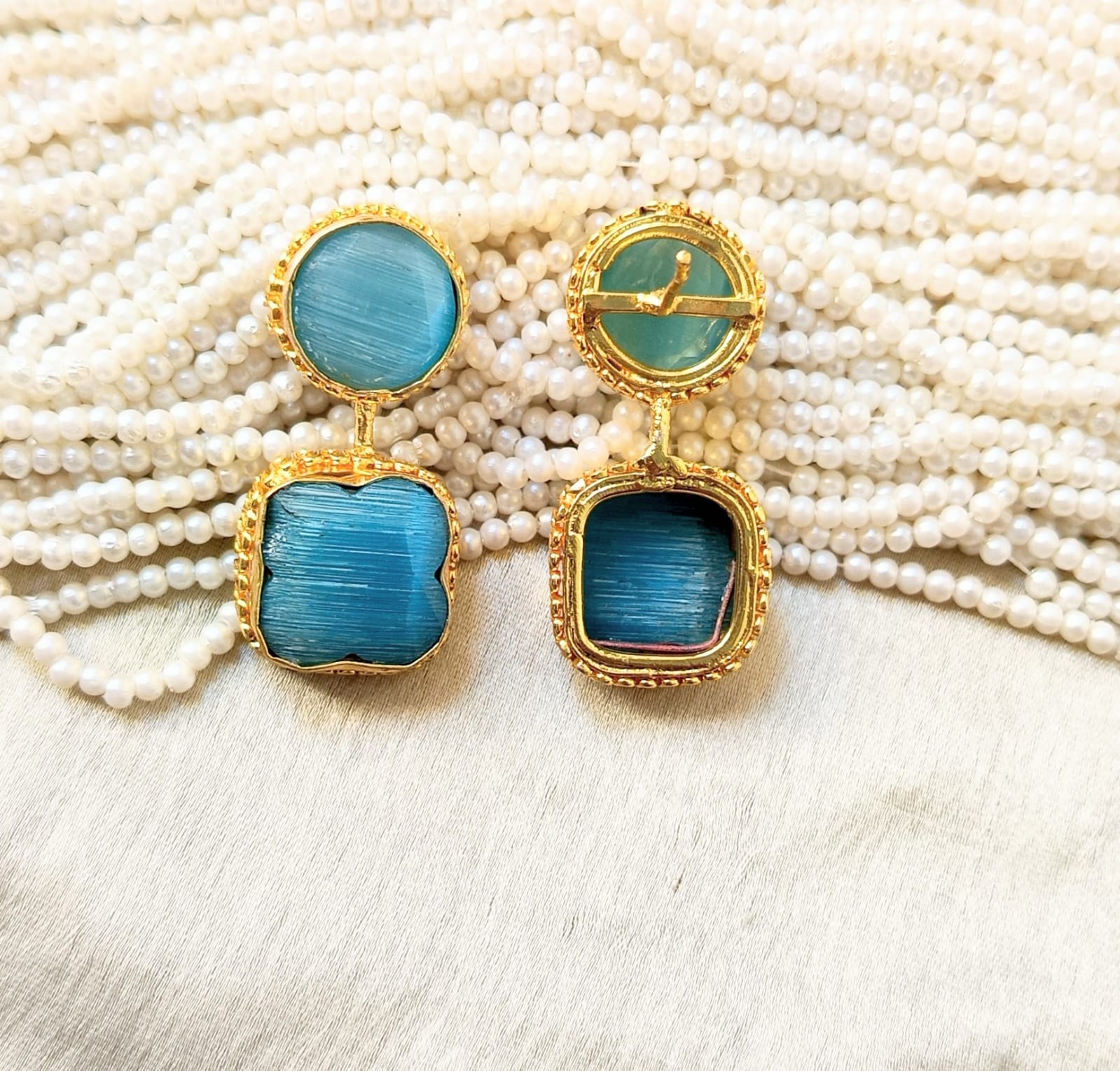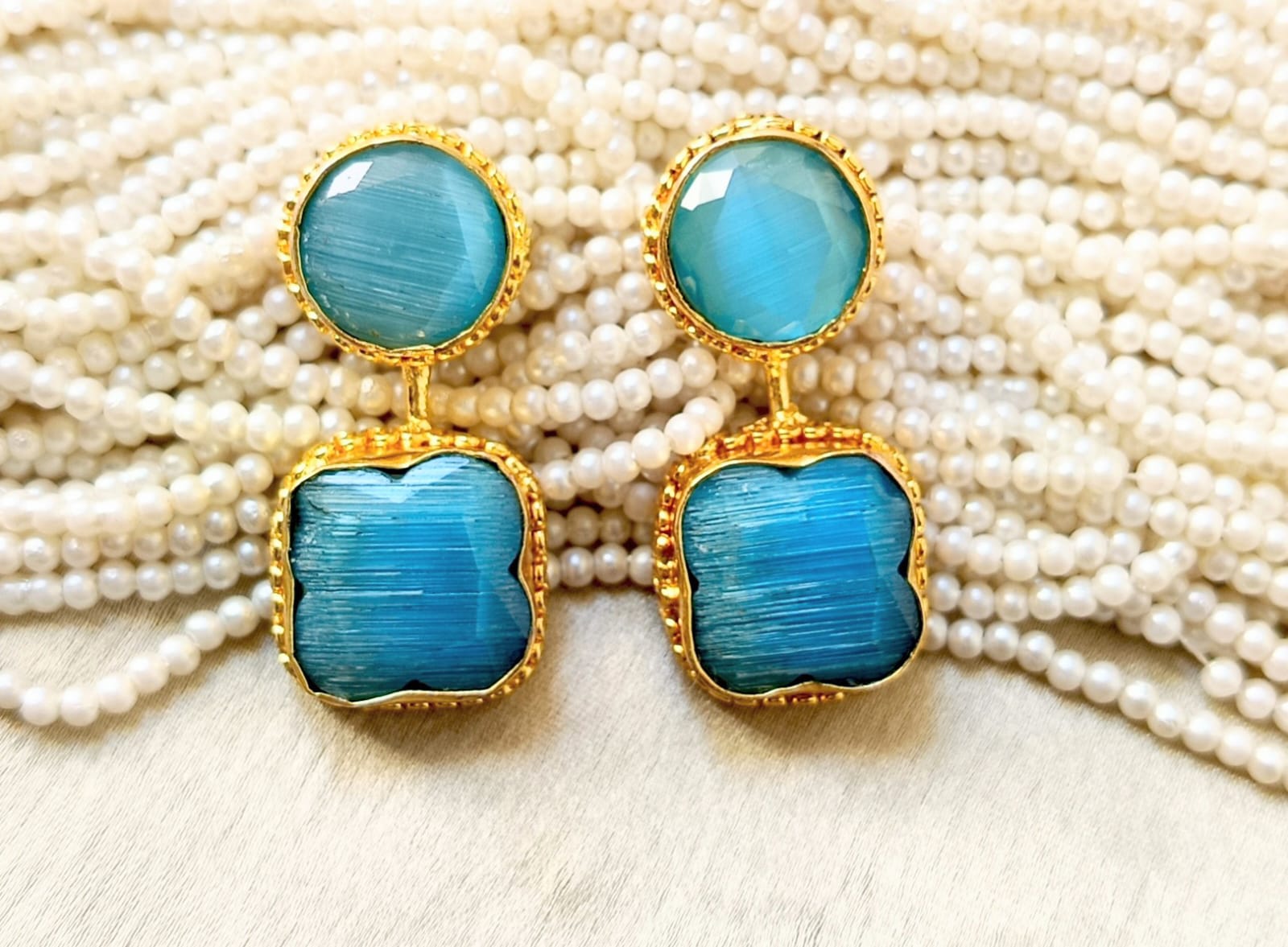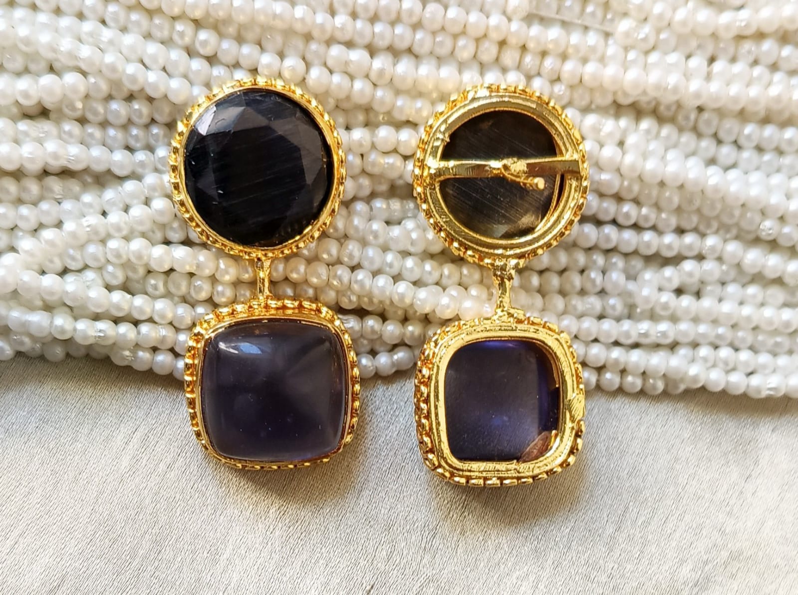 Add a touch of timeless luxury to your look with these exquisite gold-plated gemstone earrings. Each pair features vibrant, hand-cut stone set in intricate gold frames, blending traditional charm with modern elegance.