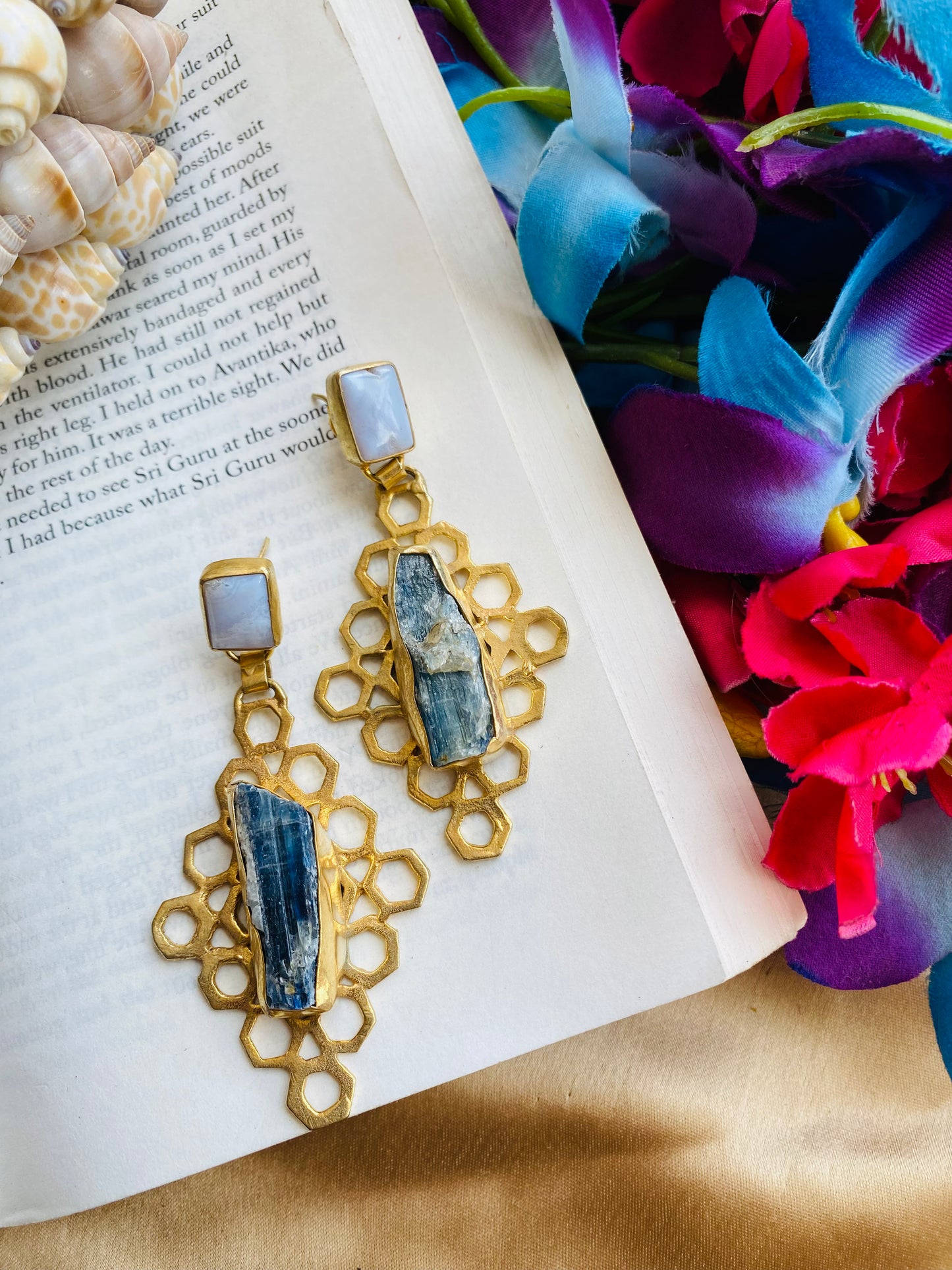 Kyanite Rough and Moonstone studded in Brass Metal with 18K Gold Plating