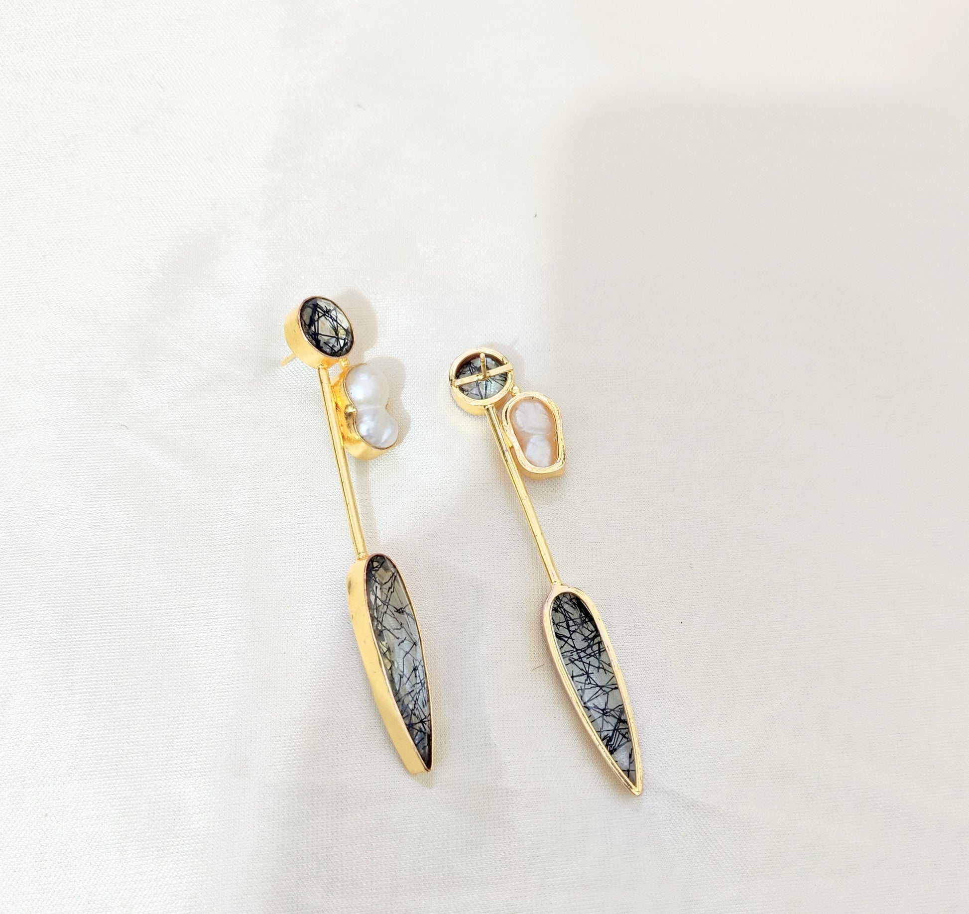 Elevate your style with these modern handcrafted drop earrings, designed for women who love subtle luxury. Featuring a unique combination of natural freshwater pearls and textured stone accents, these earrings are beautifully finished with a gold-plated setting that adds a refined, contemporary touch.