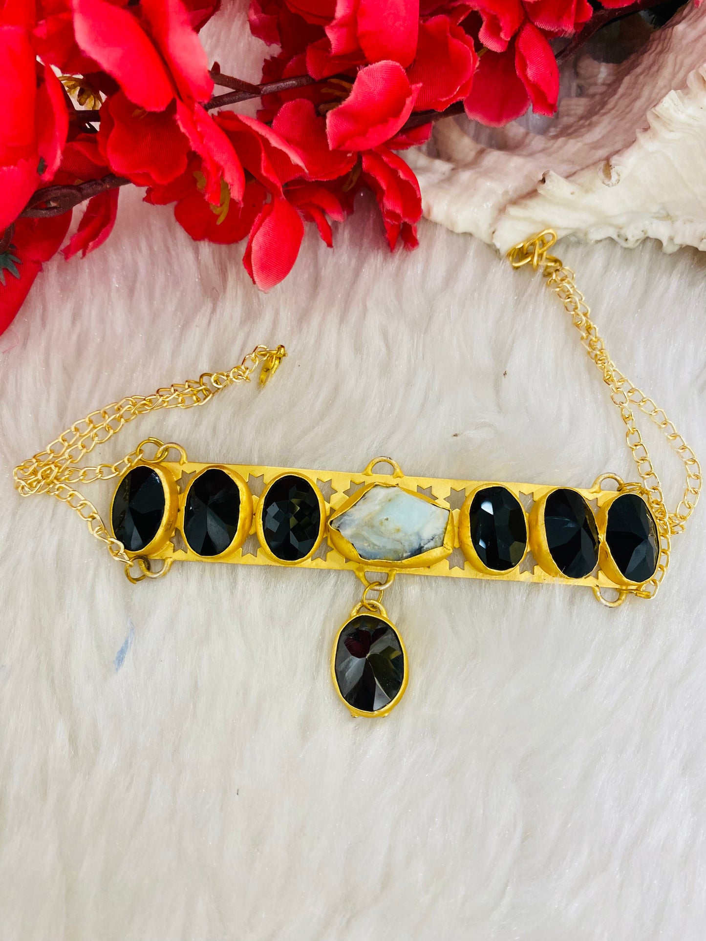 Black Onyx and Rough Opal Stone Choker studded in Brass Metal with 18K Gold Plating