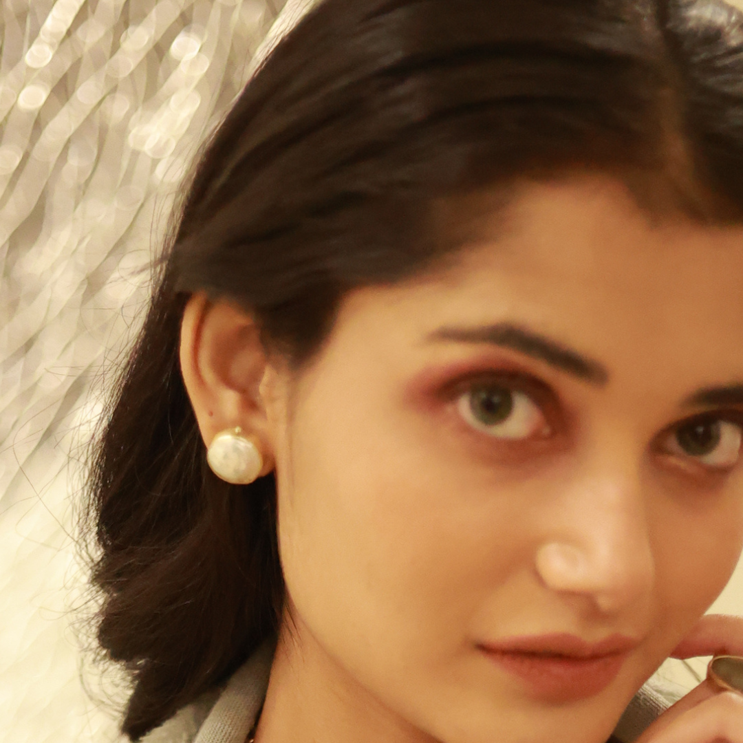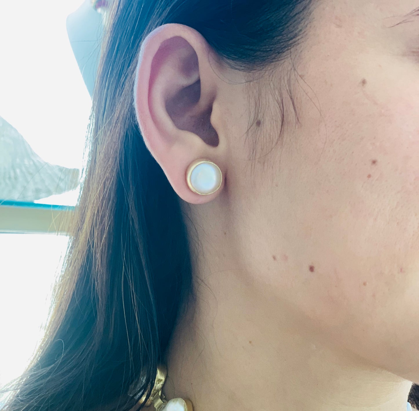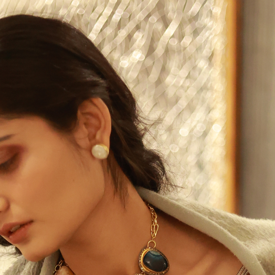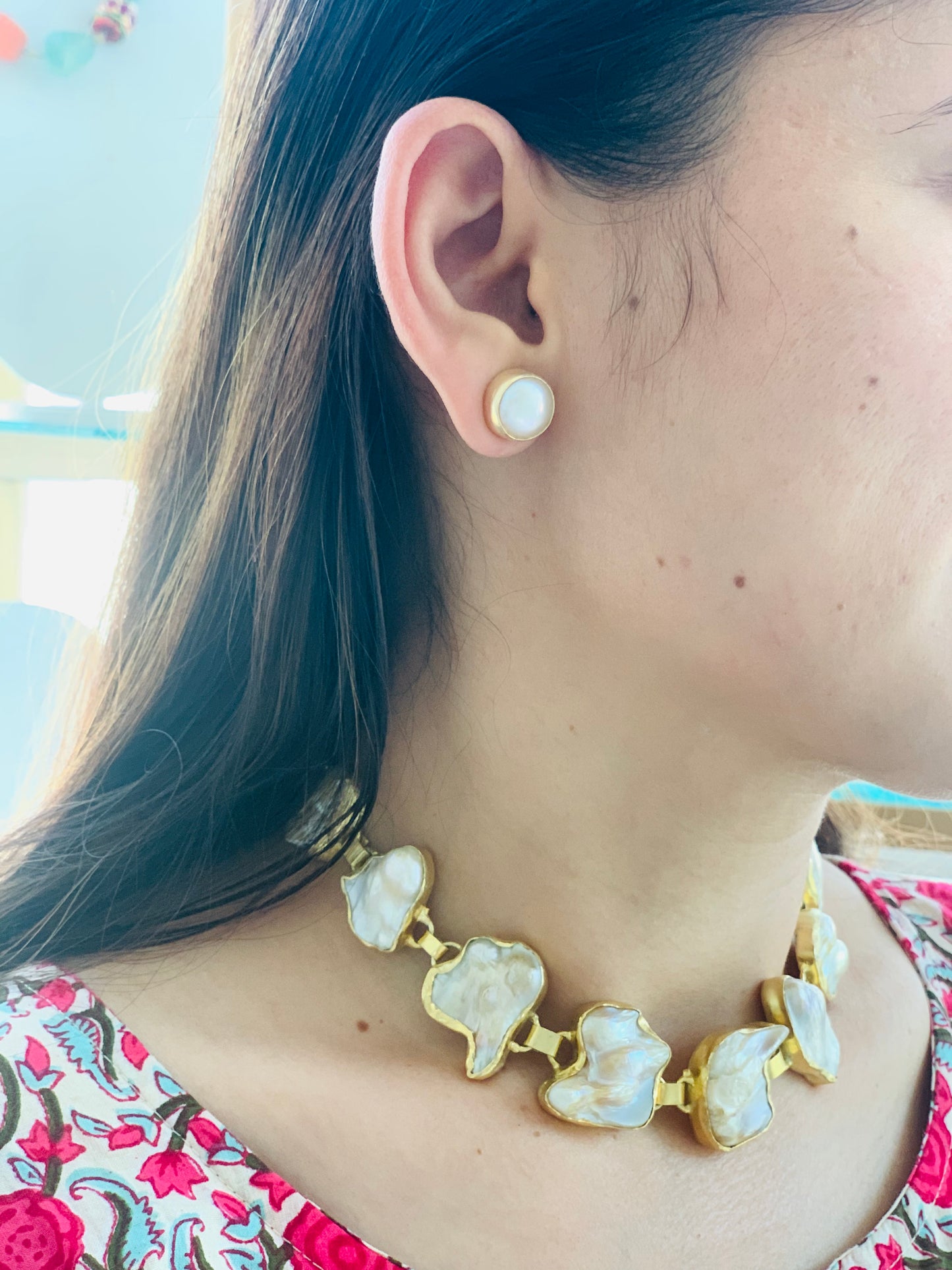 Shell Pearl Studs in brass metal with 18k gold plated.