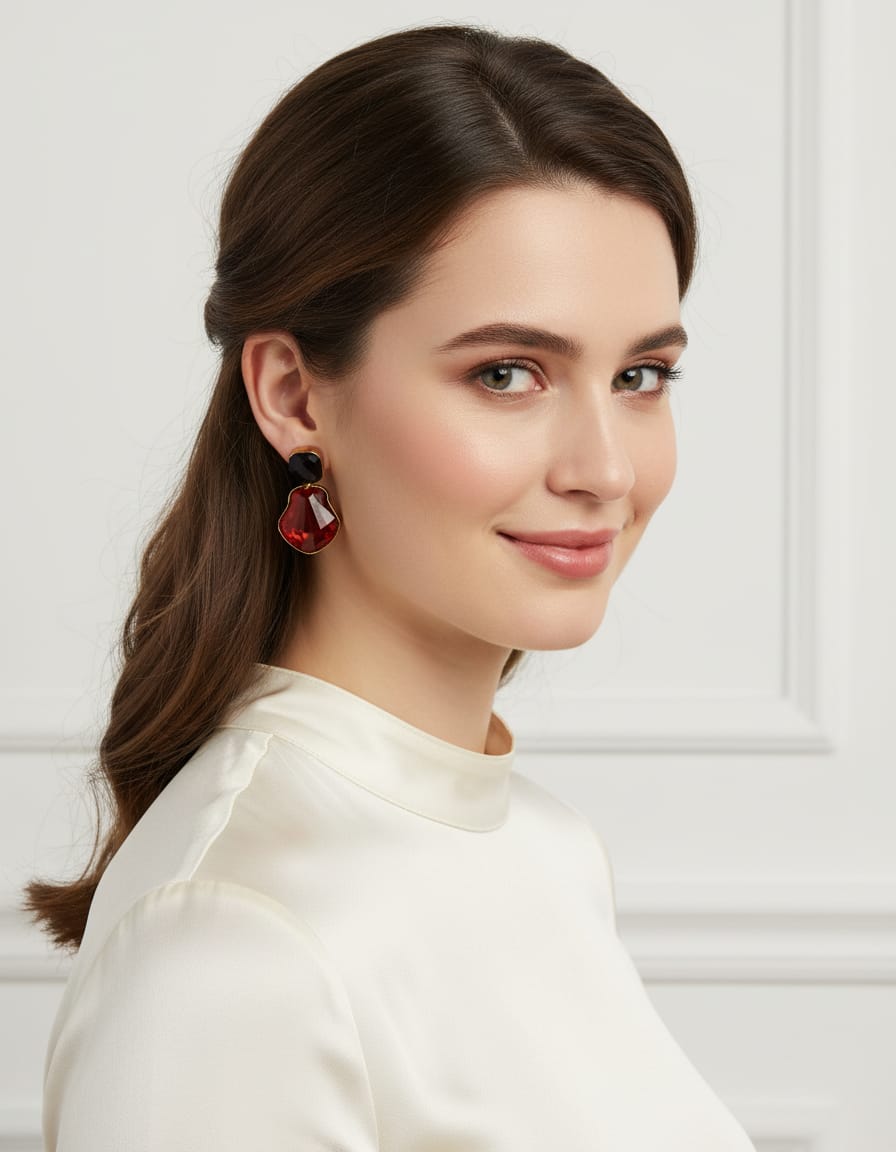 Make a bold statement with these striking drop earrings featuring a rich red faceted crystal paired with a deep black stone on top. Framed in a polished gold-tone setting, the design offers a perfect blend of elegance and drama. Ideal for festive occasions, evening wear, and special celebrations, these earrings add instant sophistication to any outfit.