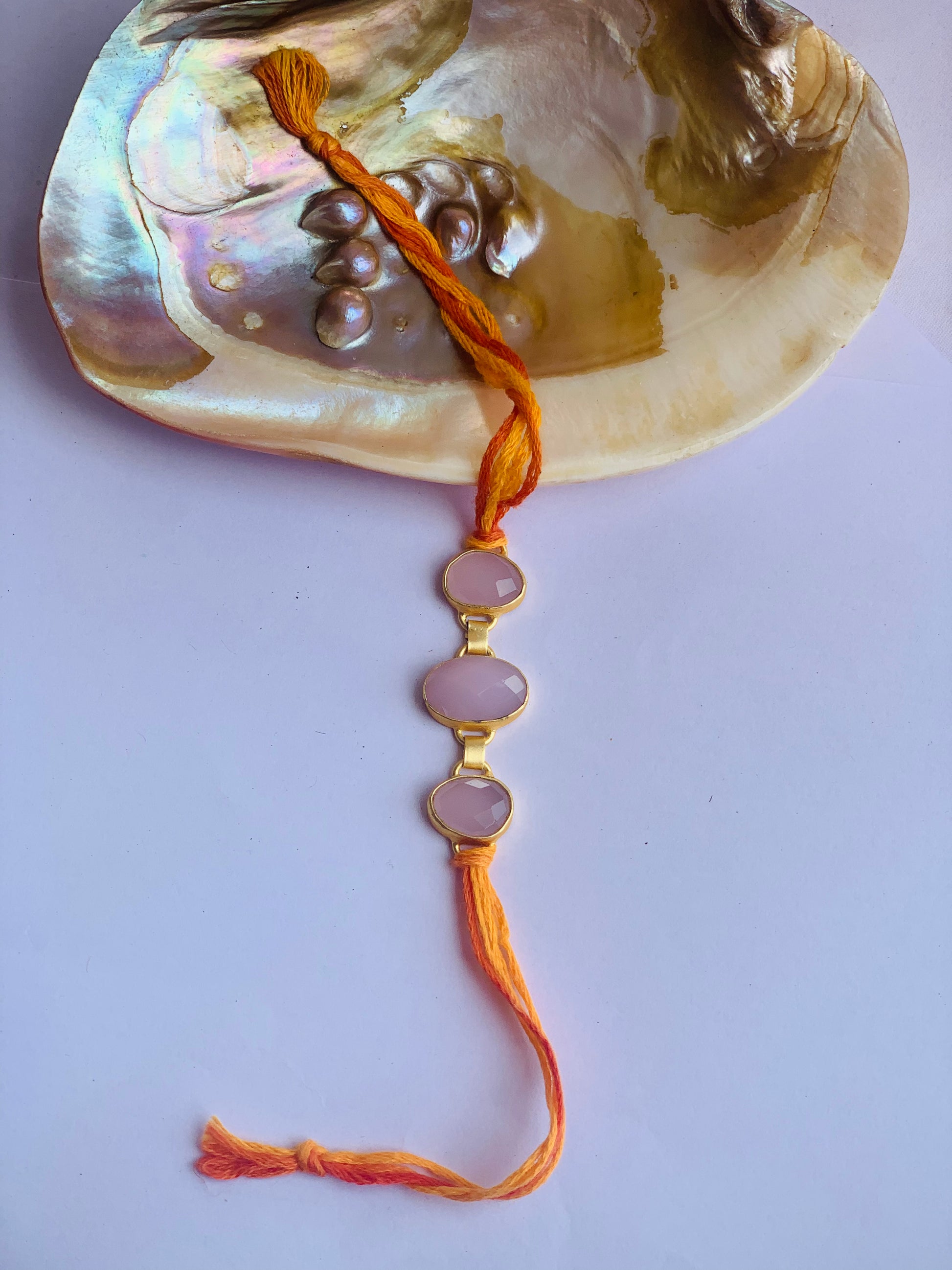 rose quartz stone in brass metal 18k gold plated