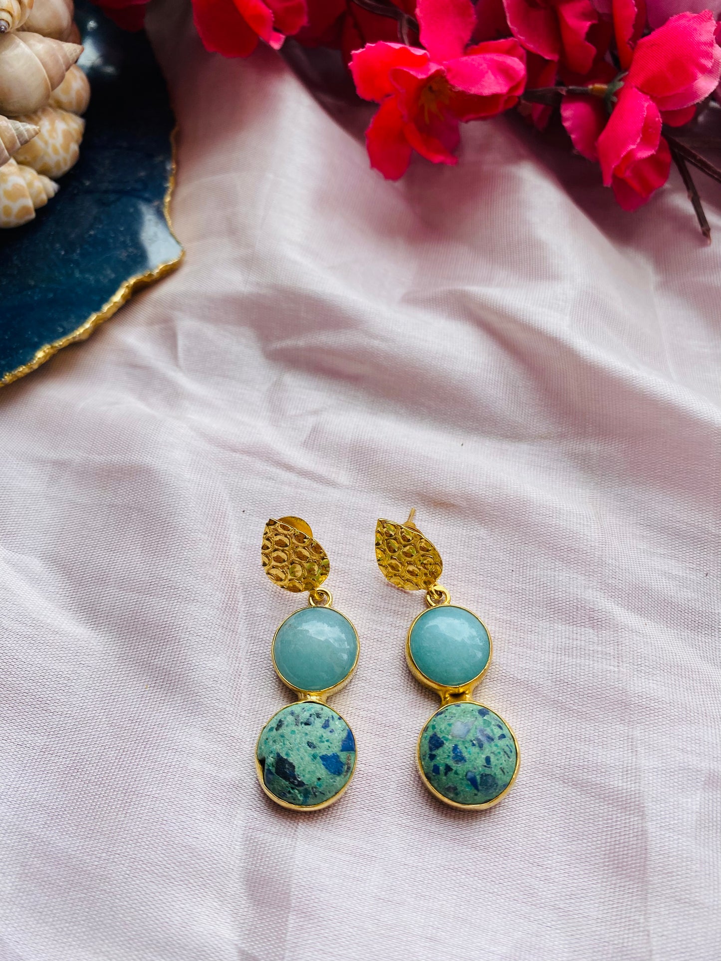 Blue Onyx and Rough Turquoise studded in brass metal with 18K gold plating