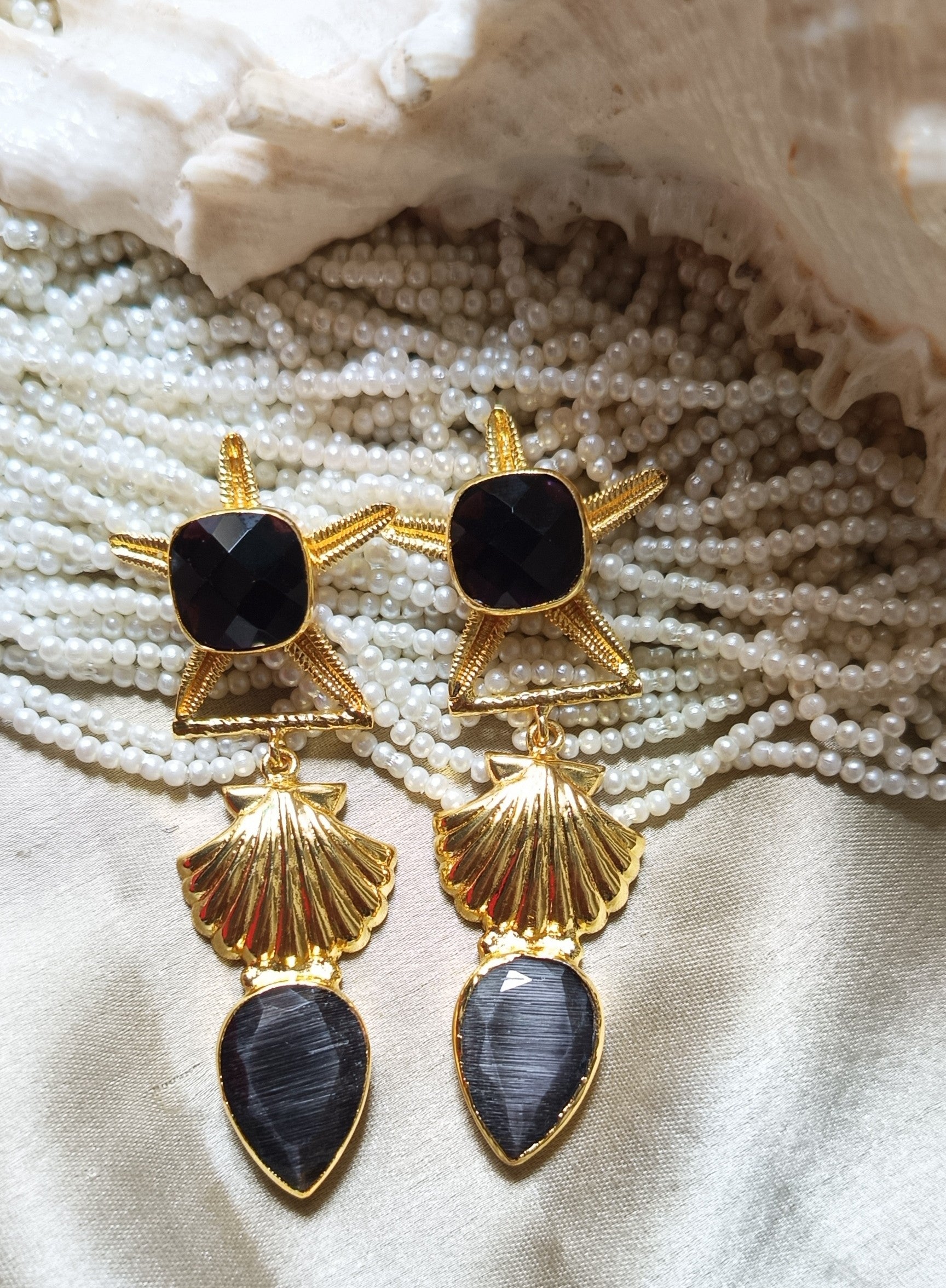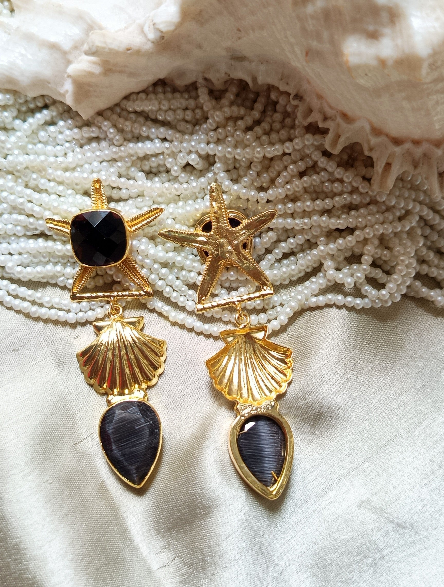 Starfish Seashell Earring, the earrings looks incredibly unique and stylish, brass metal with 18k gold plating.